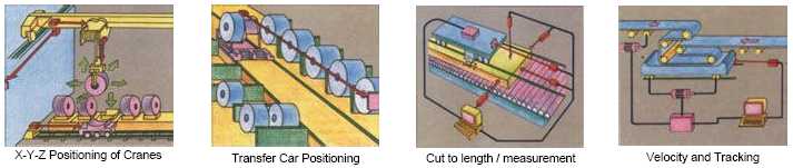 برای اندازهگیری لیزری درازا، پهنا، یا مکانیابی فراوردهی داغ یا خنک و نیز مکانیابی خودکار جرثقیلها، ادوات یا ماشینالات متحرک.